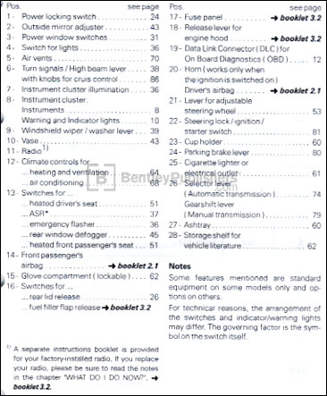 Volkswagen New Beetle 1999 Instrument Panel key code